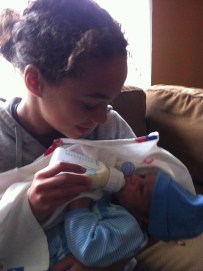 Ravyn holding Malachi for the first time